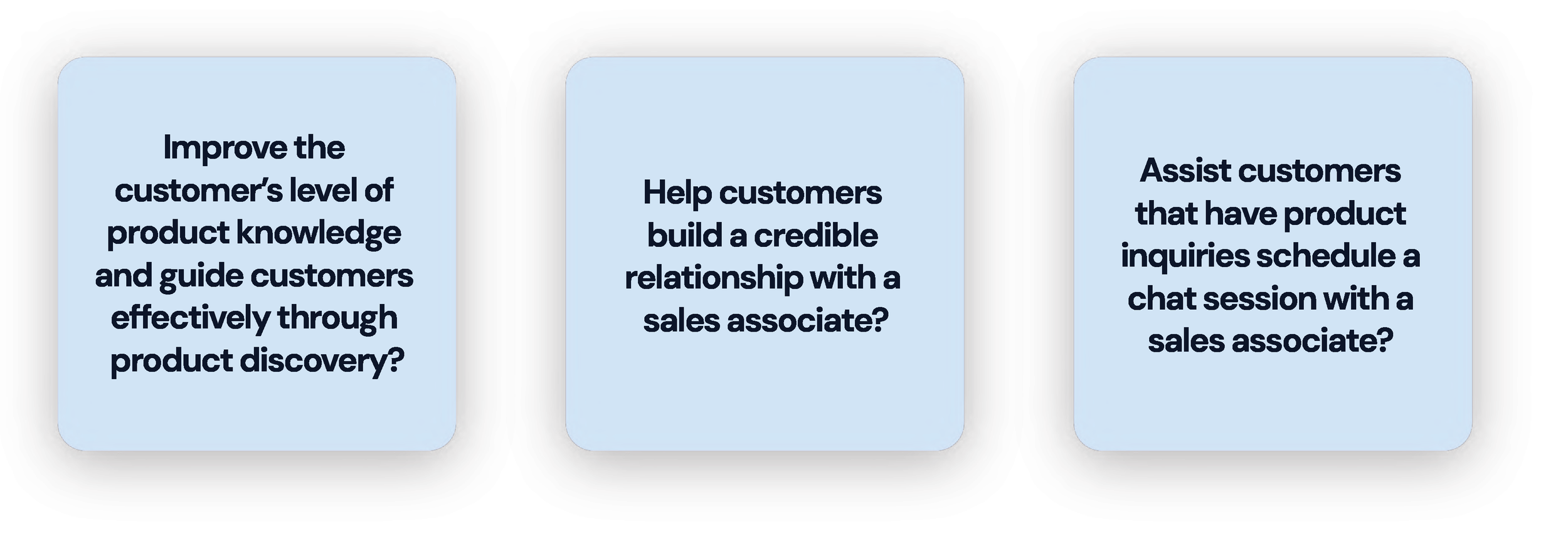 Ashley need accessible and reliable 1:1 customer assistance that can provide product information they’re seeking in order to minimize external research and make informed shopping decisions.