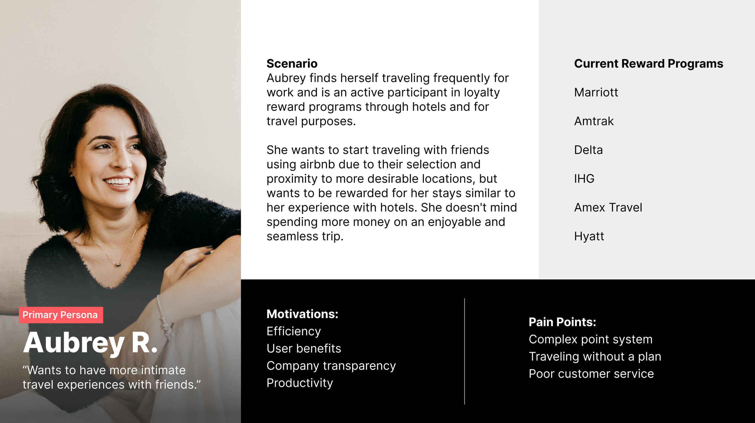 Secondary: Frequent Airbnb users need rewards to encourage loyalty despite high booking rates and fees.