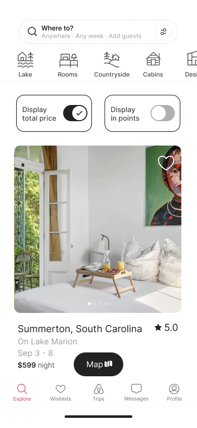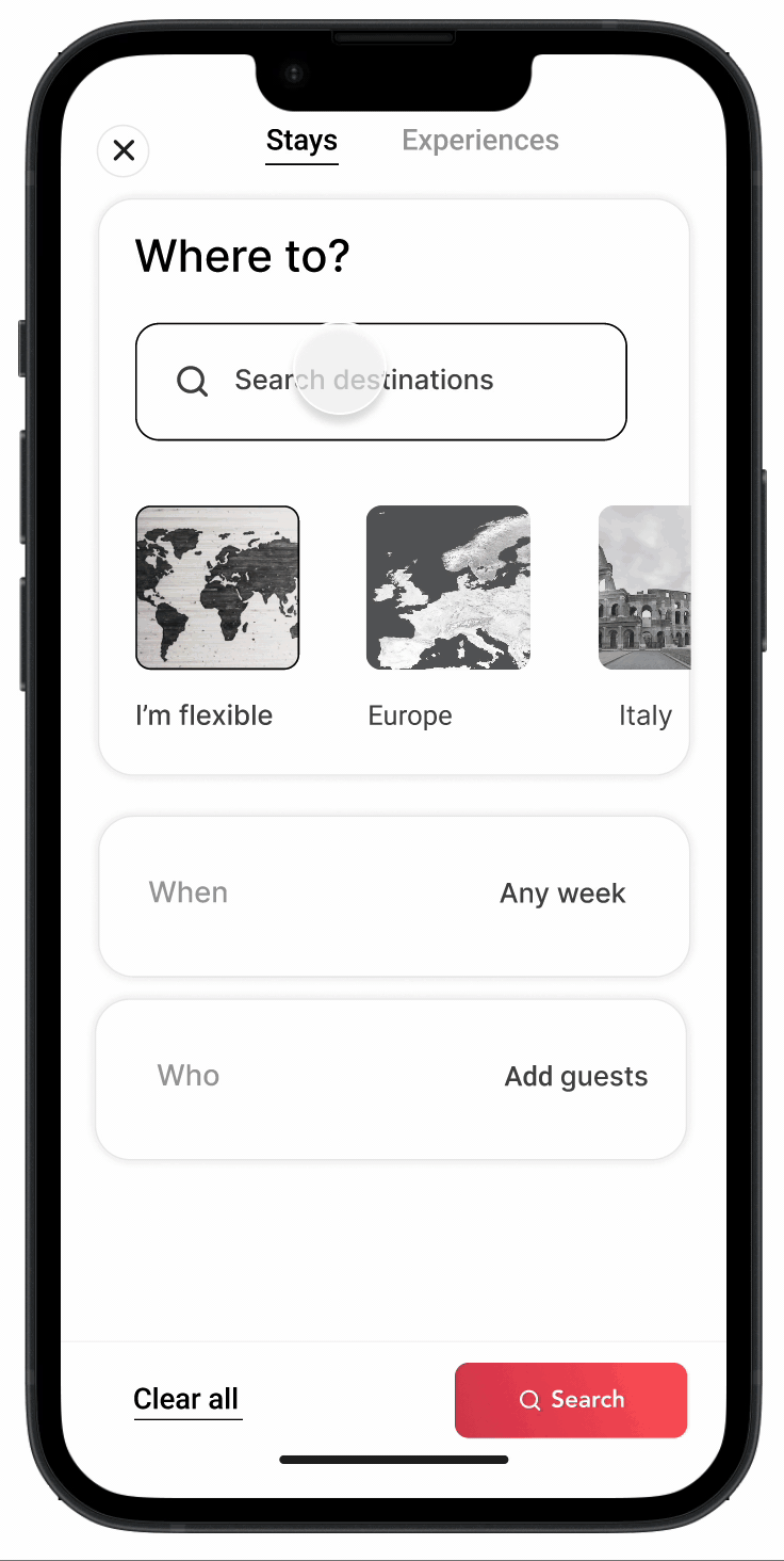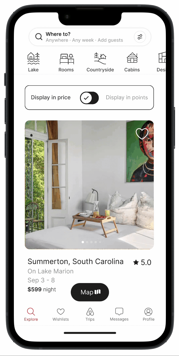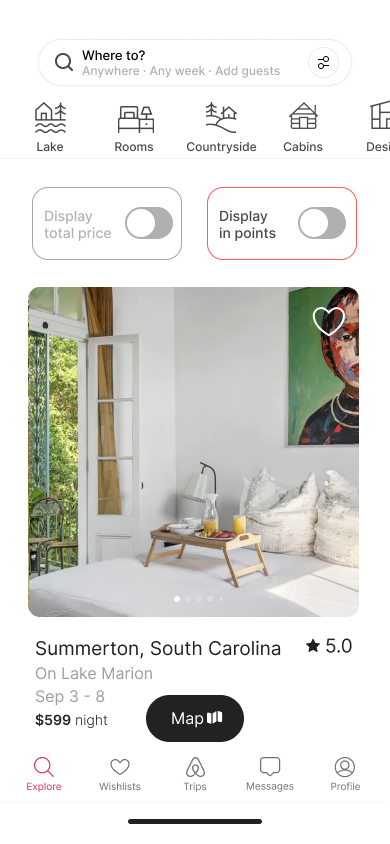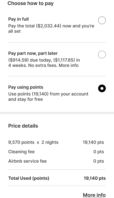 Iteration: We noticed that the second line of text in Airbnb’s search field was redundant since 100% of our users knew to click into this, so we replaced trip information with users remaining points.