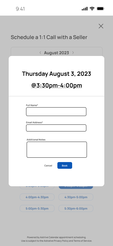 Scheduling a 1:1 call with the seller - 87% usability score