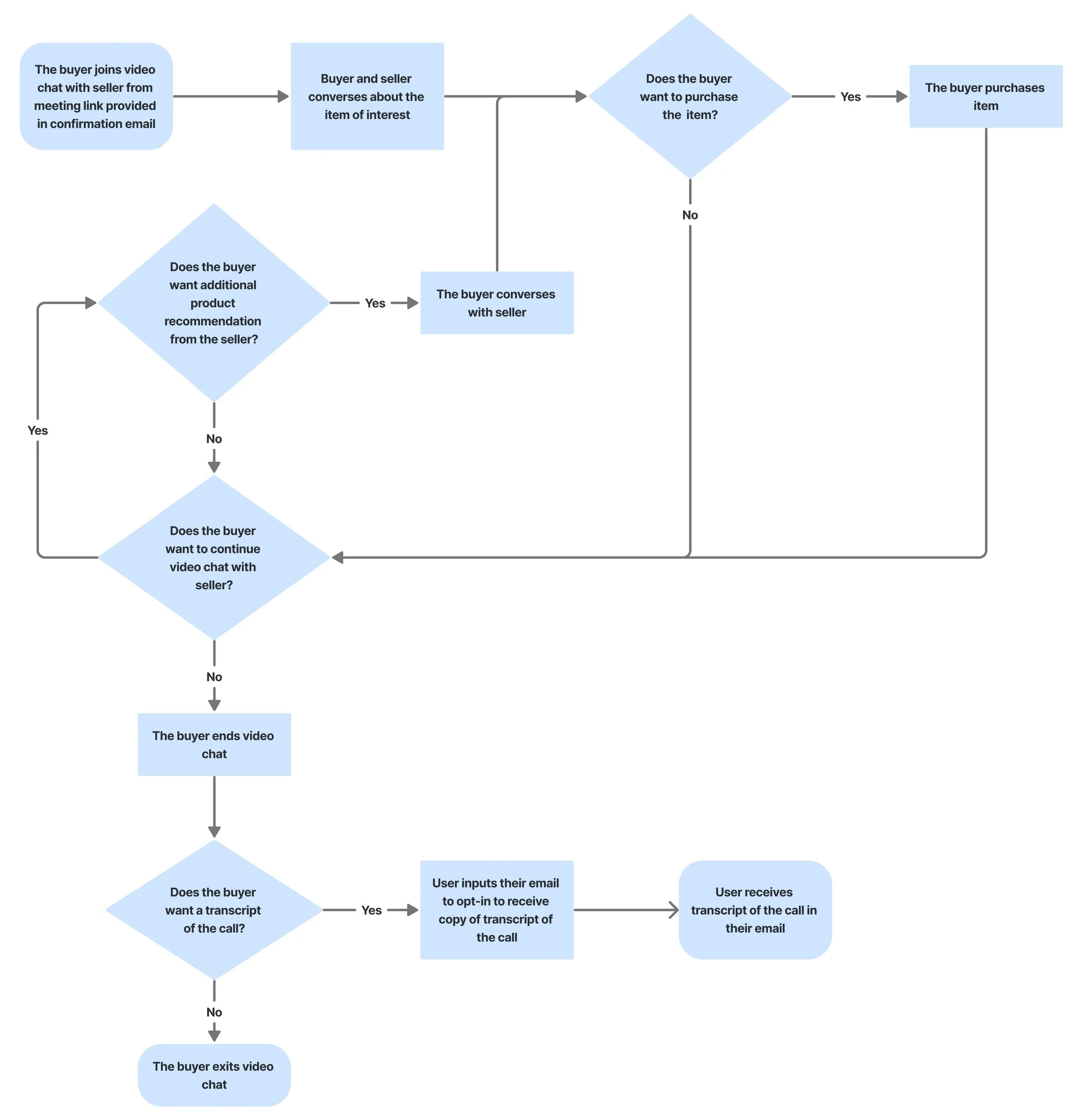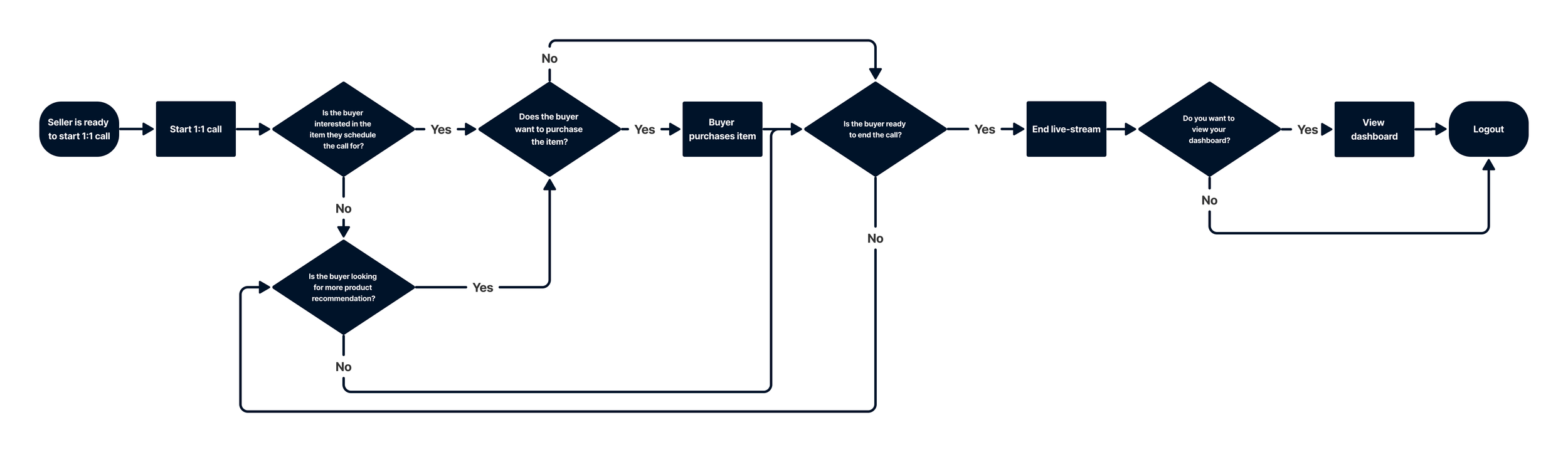 For buyers, we focused on shopping assistance via chat, noting that competitors used either chat sections or chatbots. We also analyzed OpenTable, Resy, Calendly, and Google Calendar to design the ideal scheduler, which shaped the foundation of our discovery phase.