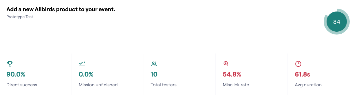 Adding a product - 84% usability score