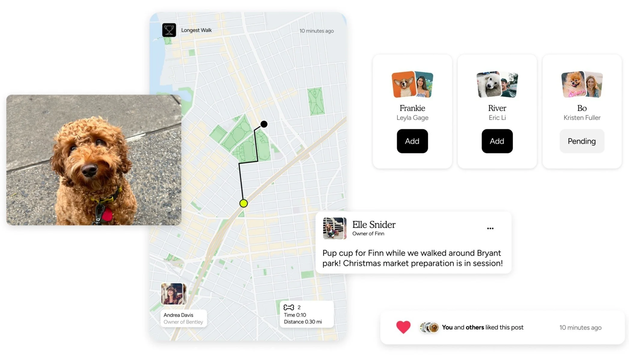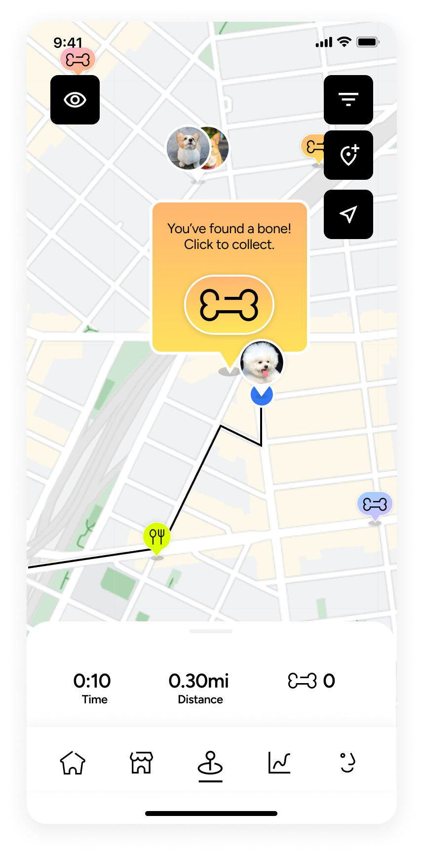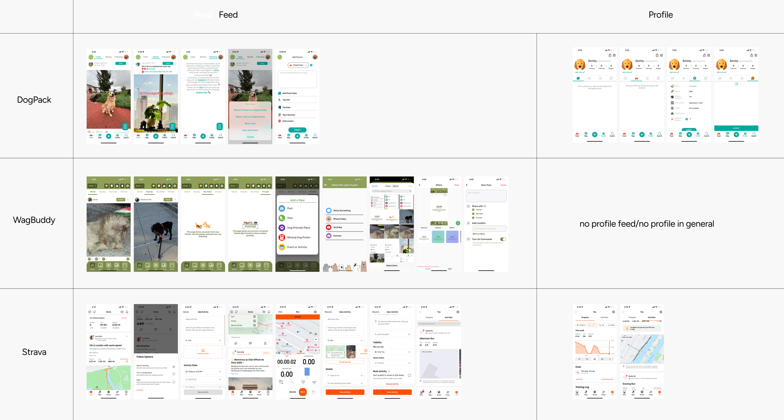 By exploring various platforms for dog owners with social feed functionality, as well as those offering route tracking and publishing features, we identified key elements that contributed to the success of these apps and brainstormed ways to prioritize our users while integrating a fun bone-collection feature to keep them engaged.